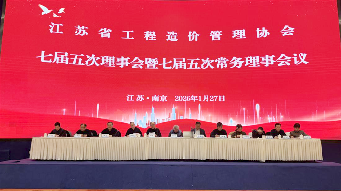 2026年1月27日,江苏省工程造价管理协会七届五次理事会议暨七届五次常务理事会议在南京顺利召开。江苏省造价协会理事会理事、常务理事、监事共三百余人出席会议。江苏省建设工程造价管理总站站长林国峰、副站长钱鑫、省协会专家委员会主任王如三应邀出席了会议。会议由江苏省造价协会何平会长、吴虹鸥秘书长分别主持。